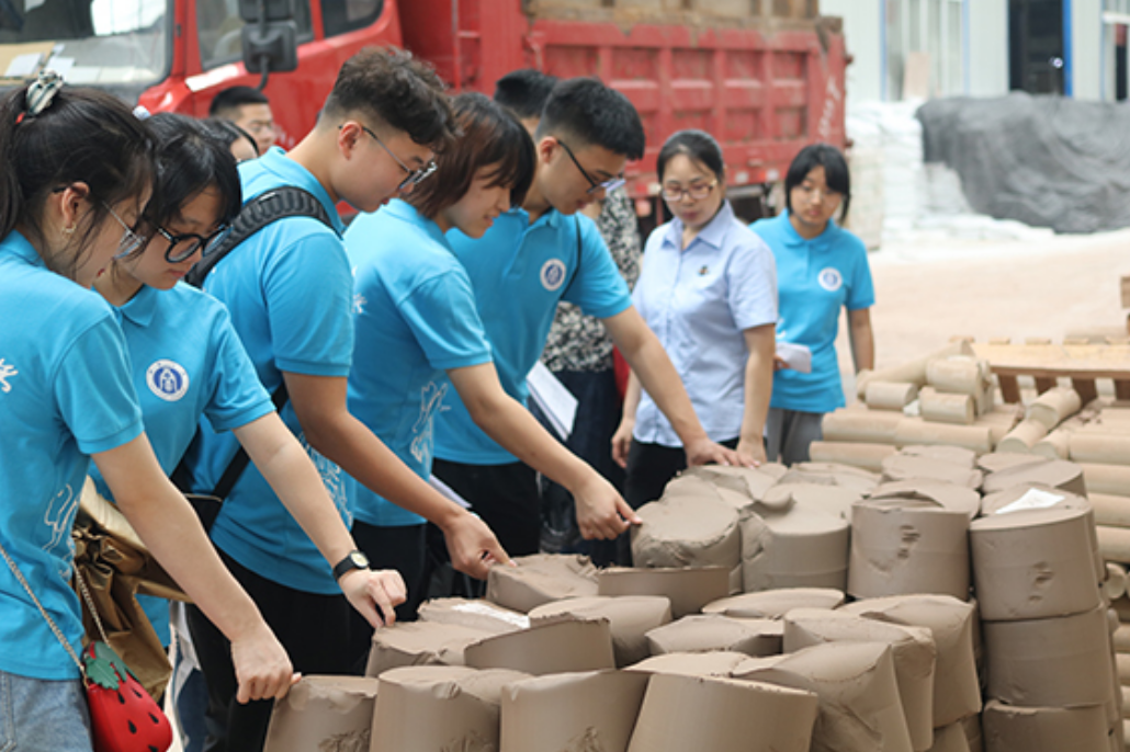 7月8日,实践团前往安陶小镇,参观荣昌陶产业与博物馆,了解当地的经济文化特色产业。走进一带一路陶艺博物馆,感悟世界陶瓷魅力;深入重庆唯美、家喜陶瓷公司,调研陶制品生产链。通过近距离体验,队员们更充分、更立体地感受到了非遗文化传承的必要性,他们也通过朋友圈、QQ空间等新媒体平台将活动感受分享给身边的人,让更多人了解到“中国四大名陶”之一荣昌陶的魅力。