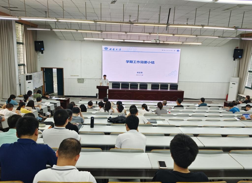 集中学习会前,吴正茂院长从教学与人才培养、学科专业建设与科研、本年度学院绩效考核初步思考等四方面对学院上半年工作进行全面总结,向全体教职工传达了学校人才工作会议精神,并对暑期工作进行了布置。