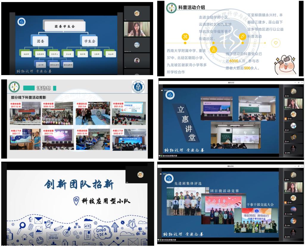 9月11日下午,为帮助2022级新生更好规划个人的全面成长发展,团委学生会执行主席敬玲莉、科普社社长唐千惠、黄欣琦以及创新创业团队队长邓欣、聂铭汐集中为新生介绍了学院的学生组织,展示特色活动,让同学们对丰富精彩的大学生活又多了一份期待与向往。