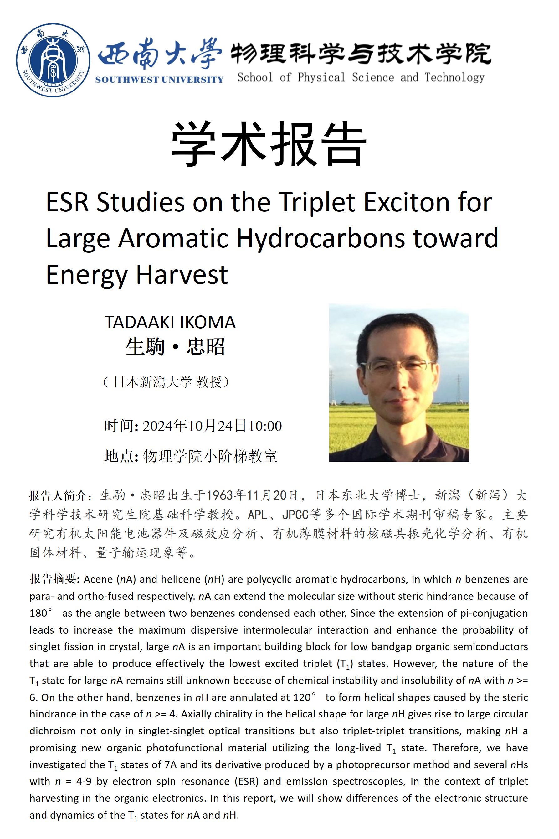 【PA视讯登录入口】ESR Studies on the Triplet Exciton for Large Aromatic Hydrocarbons toward Energy Harvest